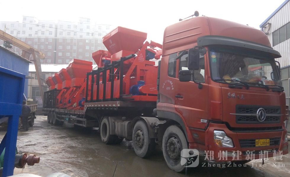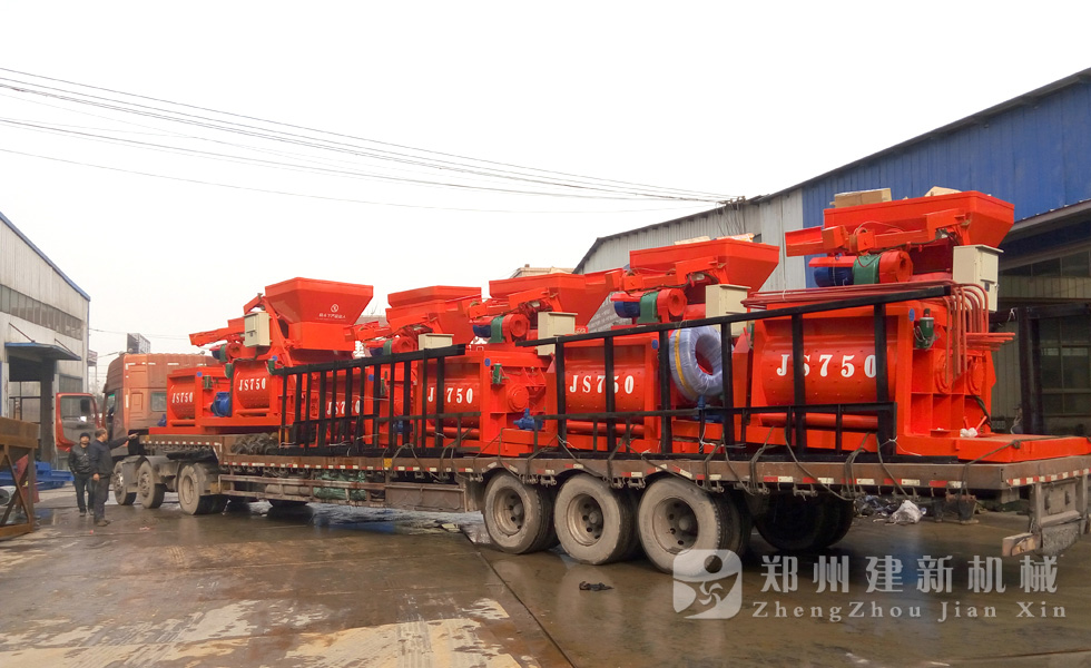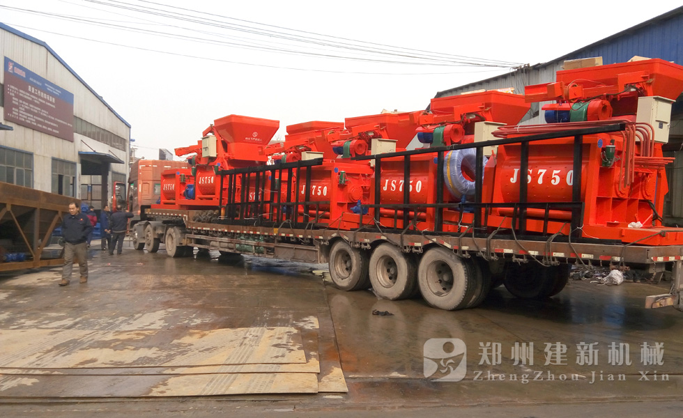 2015年12月1日,6台JS750强制式混凝土搅拌机在郑州建新机械厂家完成装车,发往河南周口。