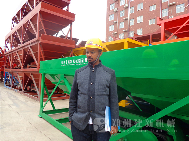 一排排整齐的配料机、搅拌机,展示着郑州建新公司雄厚的实力,也让来自埃塞俄比亚的客户真真切切的感受到了建新混凝土搅拌站设备的技术、工艺,无微不至的服务,更是坚定了客户与建新公司合作的信念。