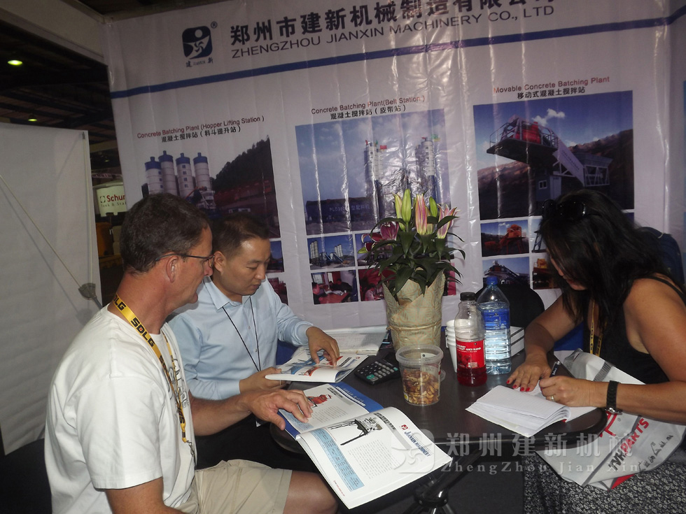 郑州建新机械制造有限公司的各种混凝土搅拌站设备在南非建筑机械展销会上,吸引了来自多个和地区的客户。本届展销会建新公司共展出HZS系列混凝土搅拌站、WBZ稳定土拌和站设备等系列建筑机械,充分的展示企业风采,促进企业走向。