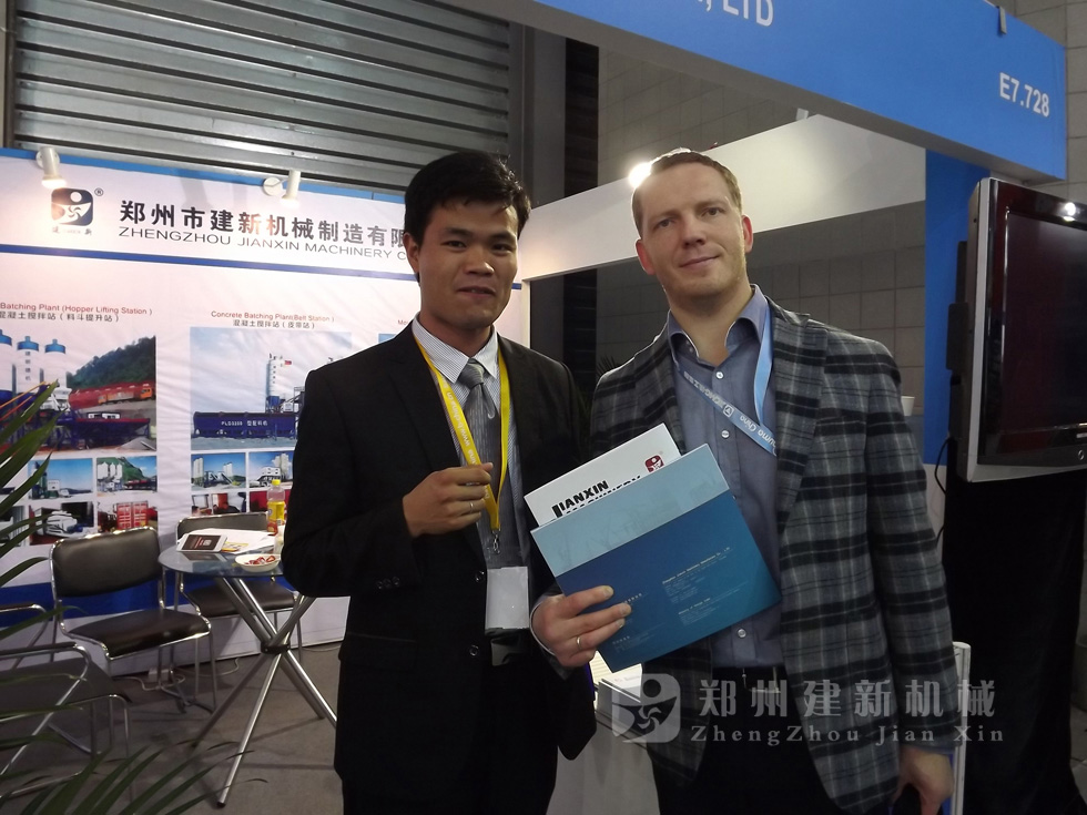 作为国内建筑机械行业里的一支跑军,郑州建新机械制造有限公司在2015年上海宝马机械展销会上,展示了建新公司大型混凝土搅拌站、稳定土拌和站全套设备,及建新JS系列双卧轴混凝土搅拌机、PLD砂石配料机、水泥仓等单机设备。